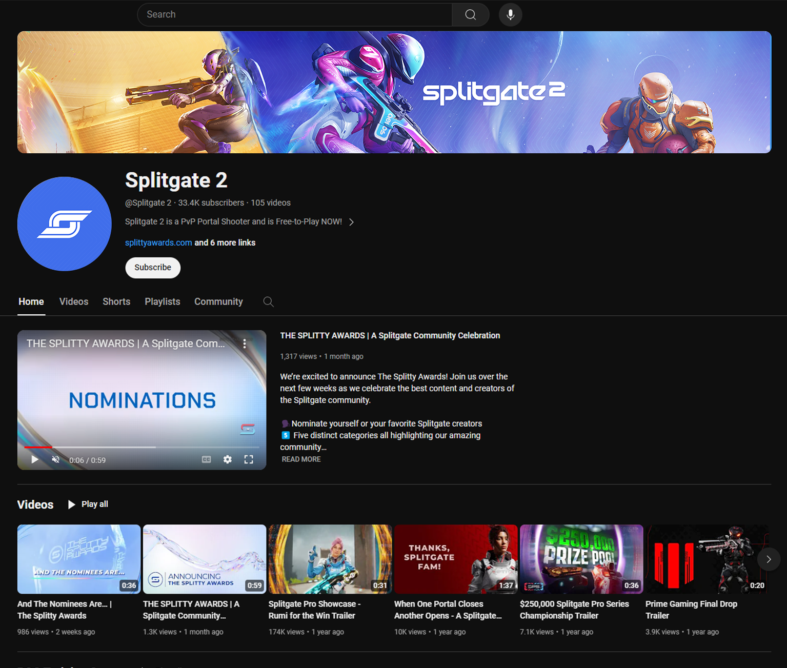 The updated key art launched during The Game Awards with unified presence across all major platforms. The animated endslate gave the video team a branded, high-energy closer that tied in cleanly with the new visual direction. The rollout strengthened Splitgate 2’s brand presence while directly reflecting community input.