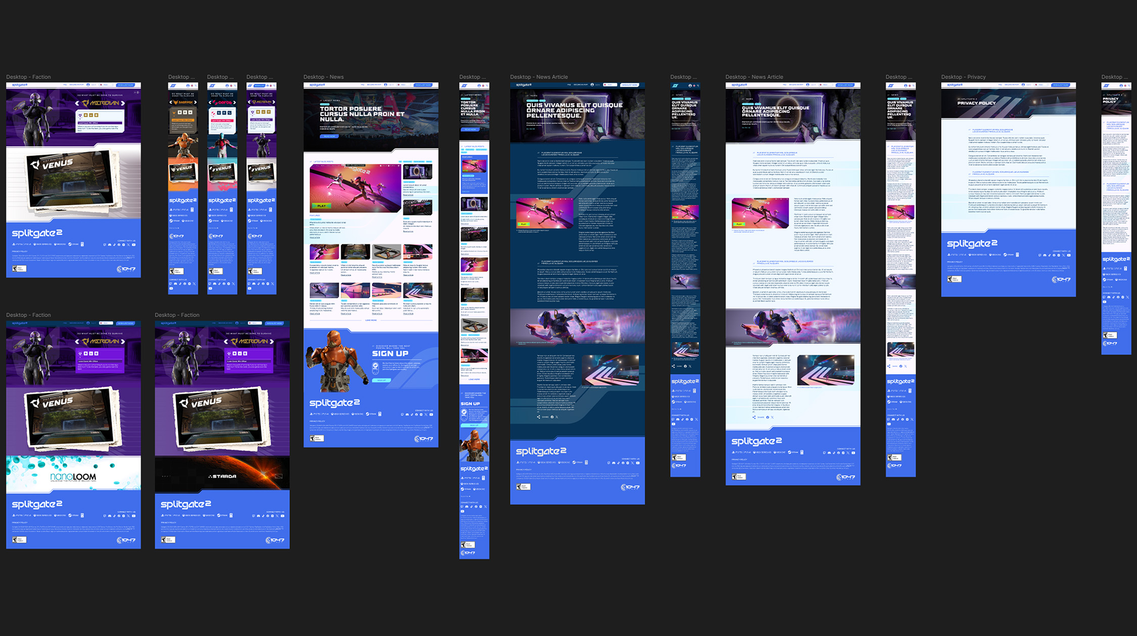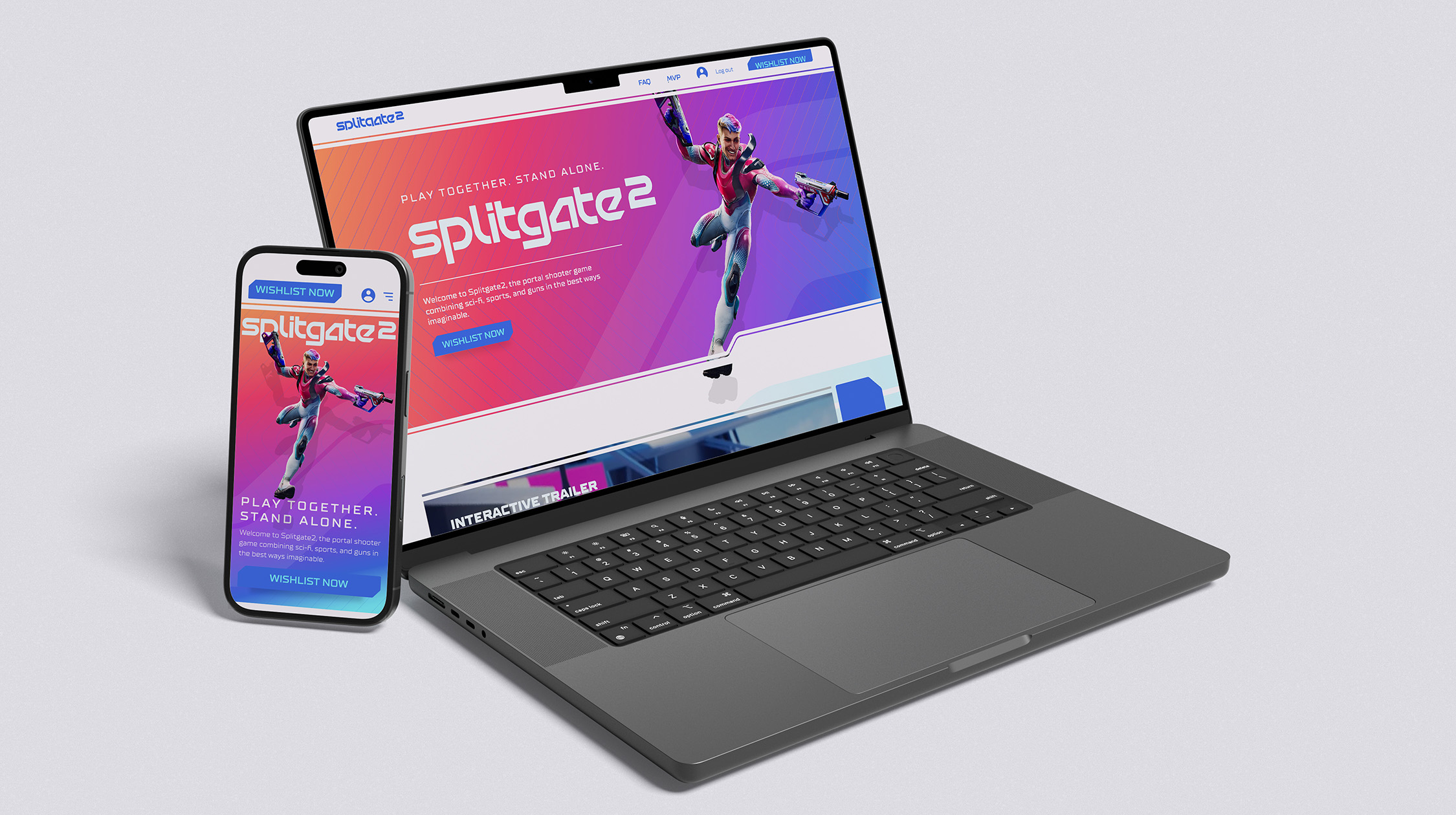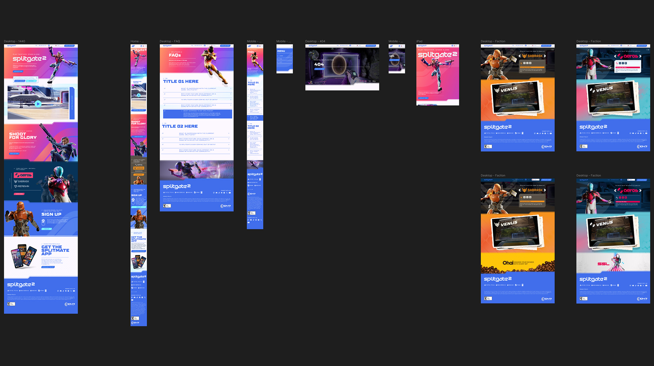 The Splitgate 2 website acted as the central hub for the campaign, designed to feel dynamic and immersive with subtle parallax scrolling that added depth without slowing performance. The layout stayed responsive across every screen size, keeping visuals crisp and navigation intuitive. Accessibility was built in from the start with strong contrast, reduced motion options, and full keyboard support so every player could experience the launch effortlessly.
